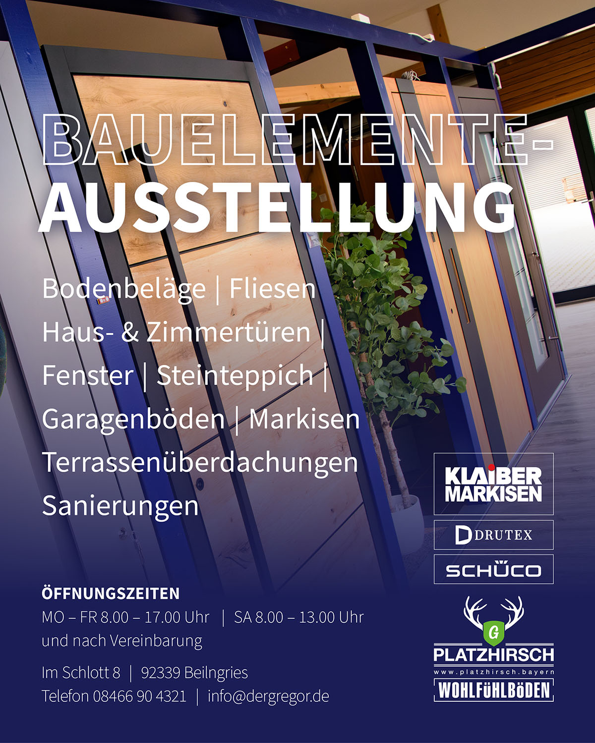 In meiner Bauelemente-Ausstellung in Grampersdorf wartet deine Lösung für Fenster, Türen und Böden.